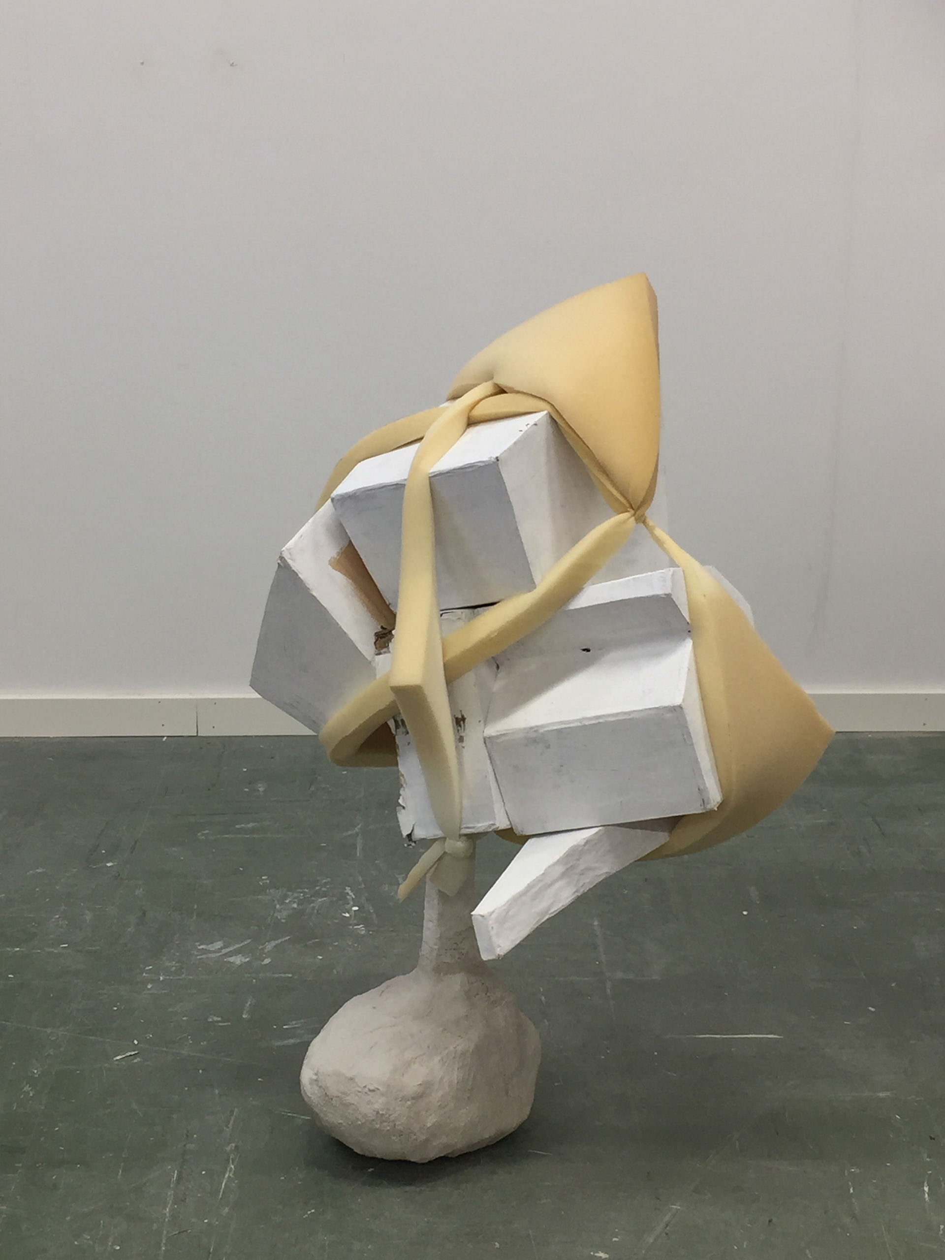 Gravity 1, 2, 2021. Material: Cardboard, newspaper, wood, textile, plaster, acrylic paint.